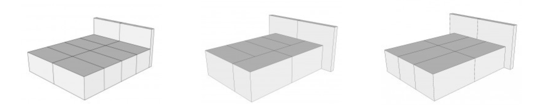 Omdat de ene slaapkamer groter is dan de andere, kunt u onze bedmaten eenvoudig aanpassen. Een voor de hand liggende oplossing is het weglaten van de losse hoofdborden, wat een lengte van 10cm bespaart. Maar er is nog een handige oplossing! Door de boxen van het bed een kwartslag te kantelen, maak je het bed wat hoger maar ook iets korter. Hierdoor kun je variëren tot wel 20 cm lengte!